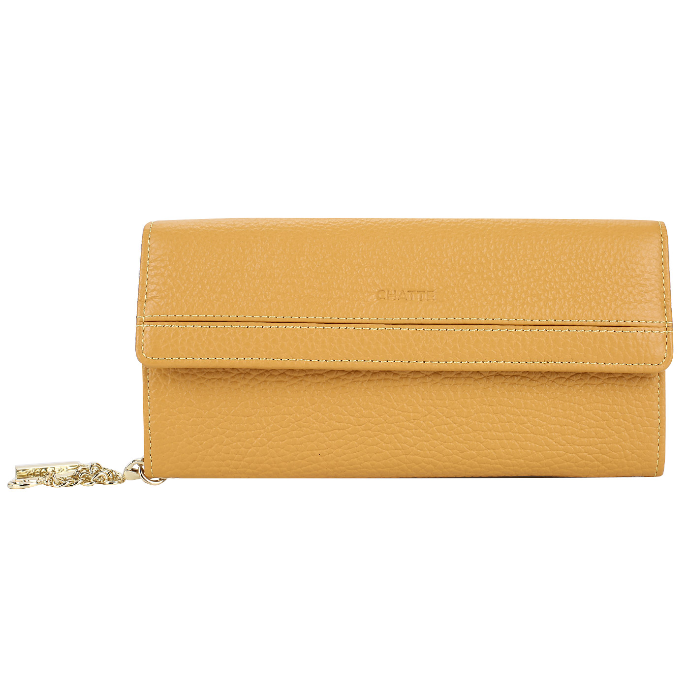 Аккуратное женское портмоне на полную купюру изготовлено из натуральной кожи цвета охры и украшено стильным фирменным брелоком. Аксессуар закрывается на кнопку и состоит из двух отделов. Внутри расположены четыре кармана, один из которых закрывается на молнию и предназначен для хранения мелочи, а также шесть слотов для визитных и пластиковых карточек. Открытый наружный карман примыкает к задней стенке портмоне.