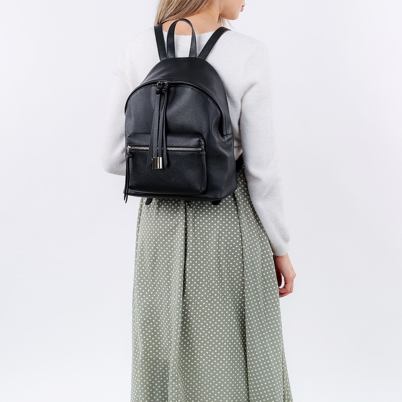 Черный кожаный рюкзак