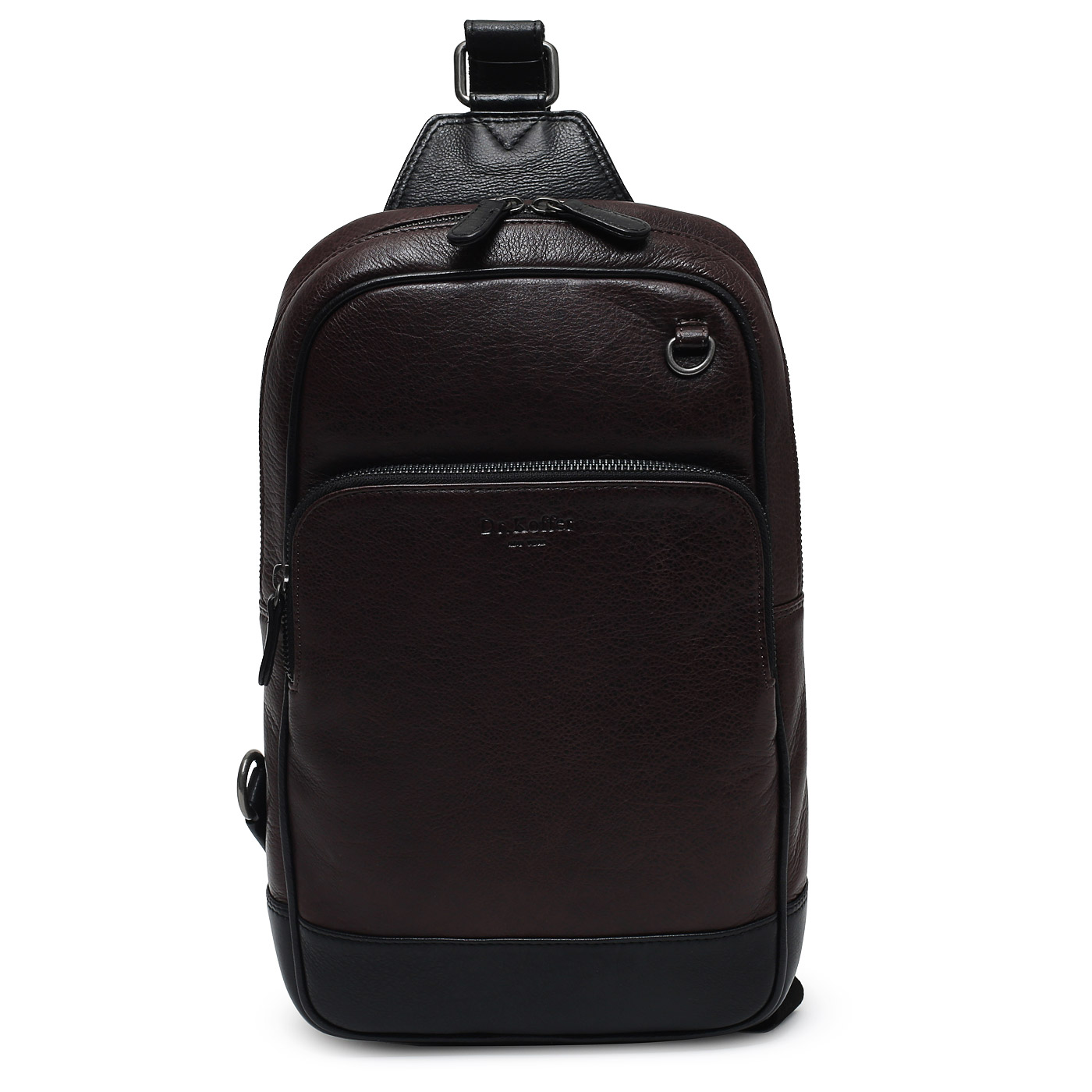 Dr. Koffer – американский семейный бренд с немецкими корнями. 20 лет назад его основали Кейф и Энди Мэн, однако братья не стали подражать конкурентами и не вынесли свою фамилию в название бренда. Dr. Koffer начал с выпуска портфелей, теперь же в ассортименте компании портмоне, обложки, ключницы, сумки, ремни и даже платки. Основой материал для производства – венецианская кожа. Главная целевая аудитория – мужчины. Самый известный аксессуар Dr. Koffer – это кожаный портплед, который раз и навсегда решил проблему с перевозкой делового костюма. По сути, это маленькая гардеробная, которая легко помещается в отделение для ручной клади.