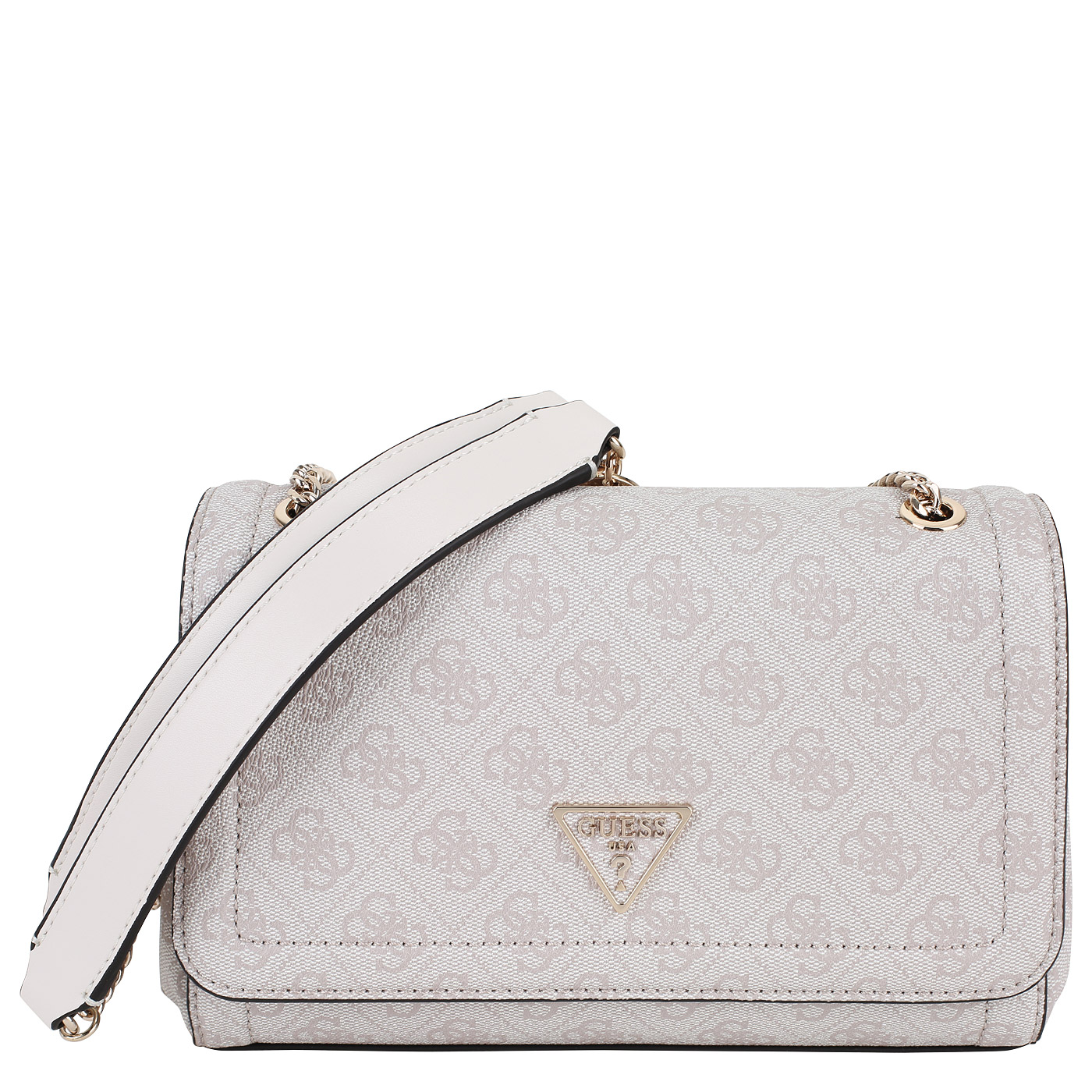 Сумка с ручками-цепочками Guess Noelle HWBD78 79210_dove logo_pc - 2000558604611 серый полиуретан 26,5 x 15,5 x 8 Цена 18500 руб. купить в интернет-магазине PanChemodan.ru в Москве
